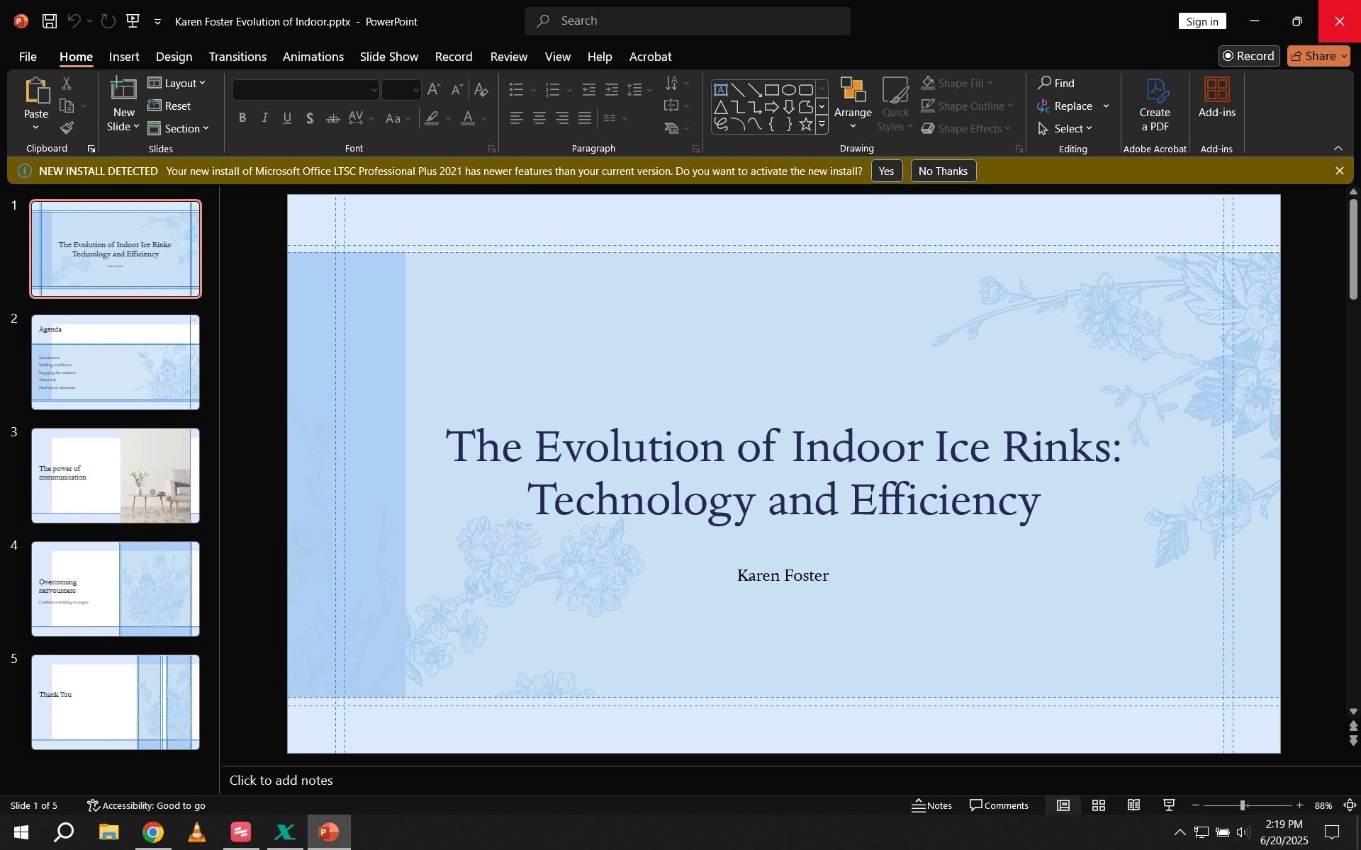The presentation will open. If time allows, it’s always a good idea to review the slides in advance to ensure everything looks correct on the room display.