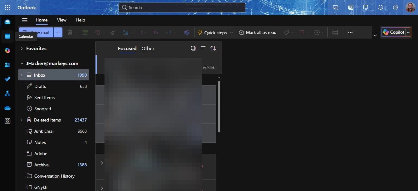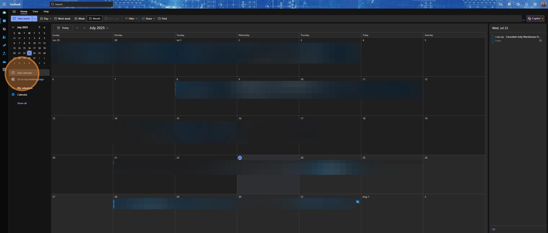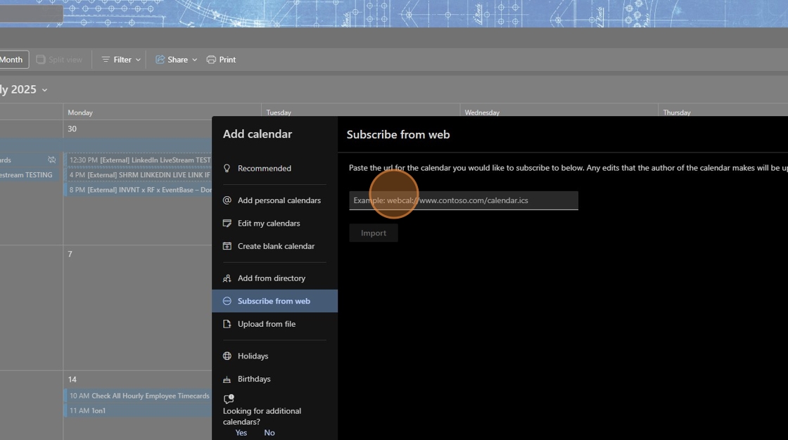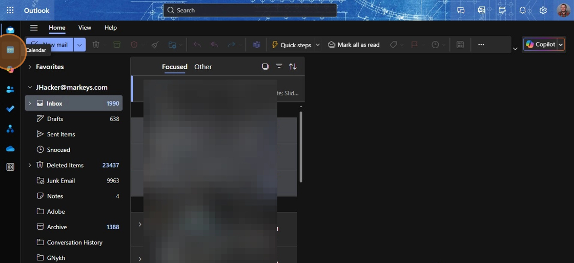 5. After you have that link copied go to the Outlook web app at https://outlook.office365.com/mail/then navigate to your calendars.