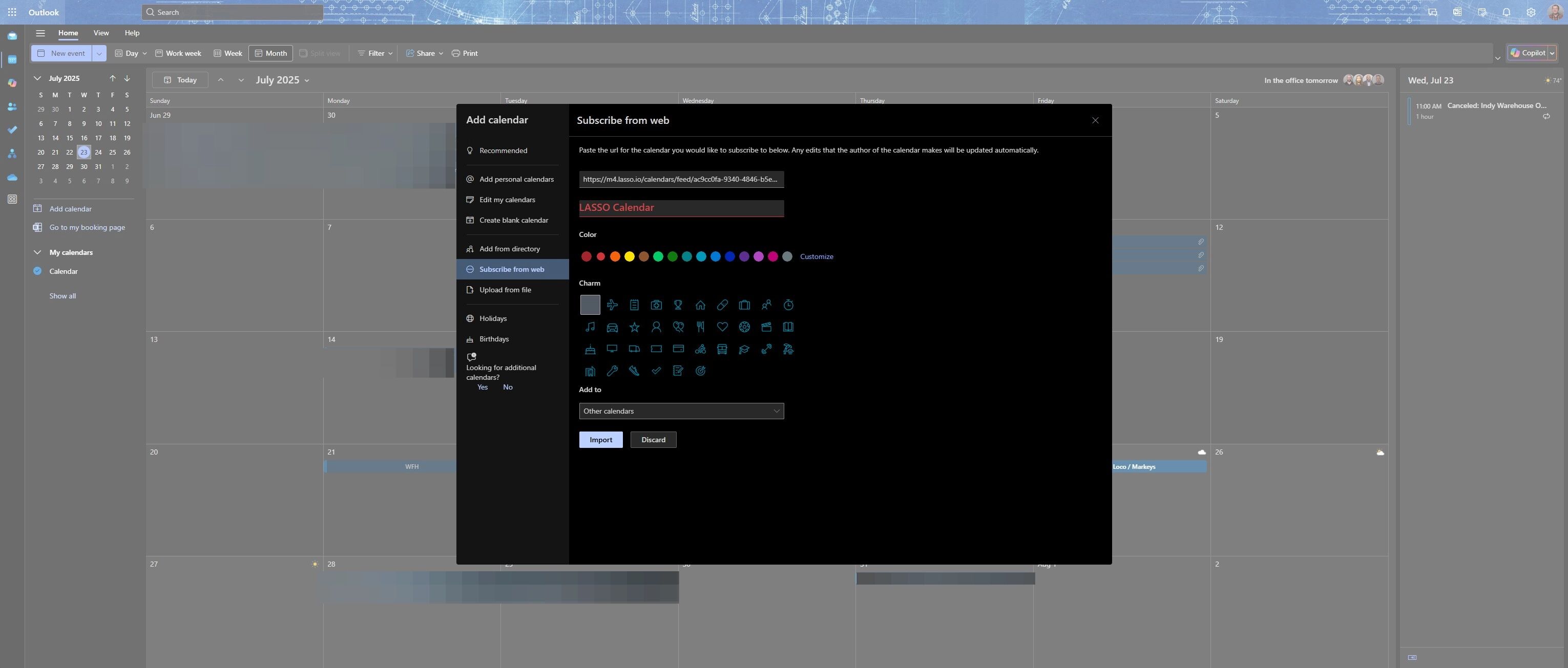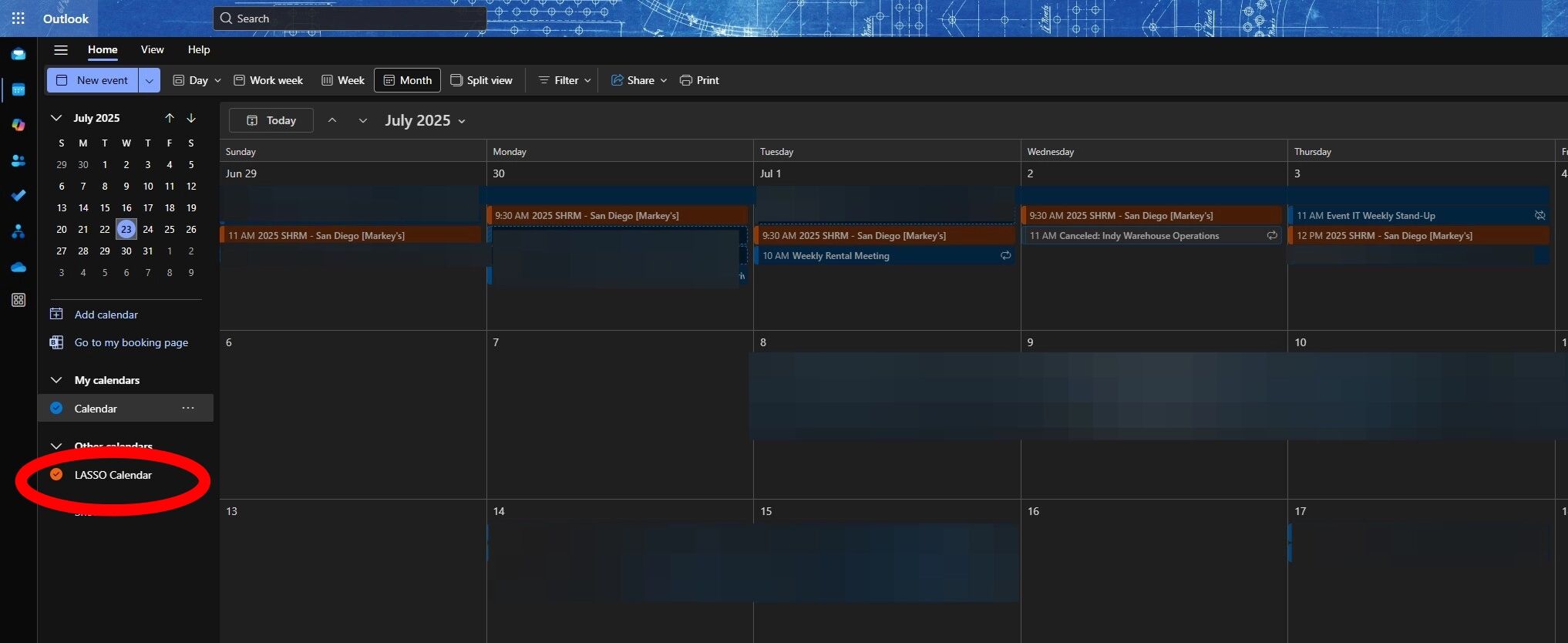 11. After doing that, you should see all of your lasso events populate inside of outlook as a selectable calendar.