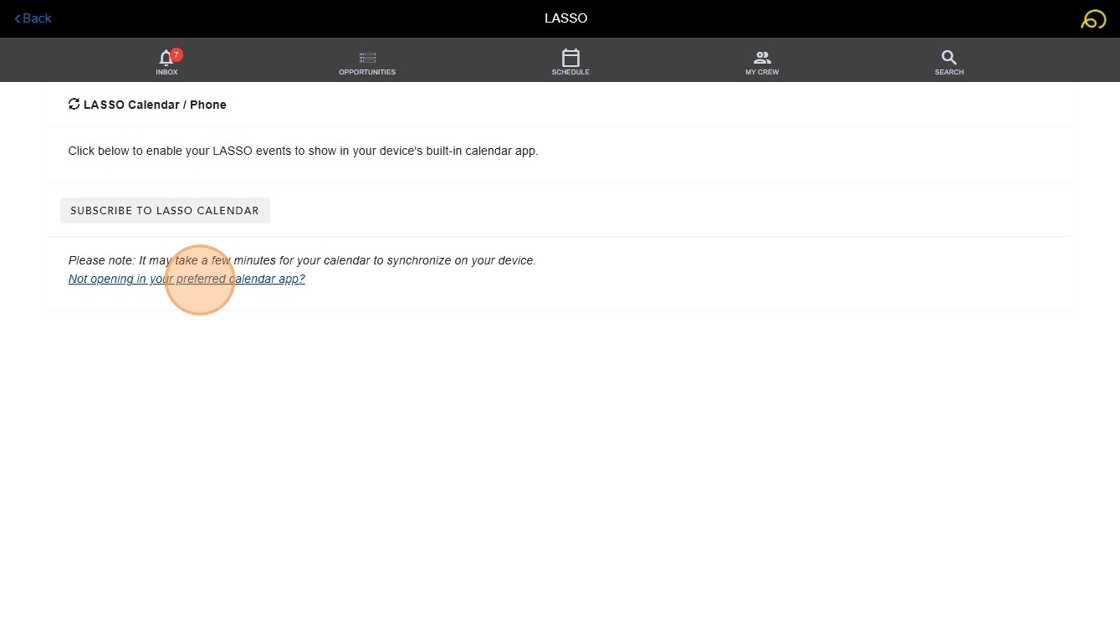 3. Do not click on this "Subscribe to the Lasso calendar". Instead, click on this blue link that says "Not opening in your preferred calendar App".