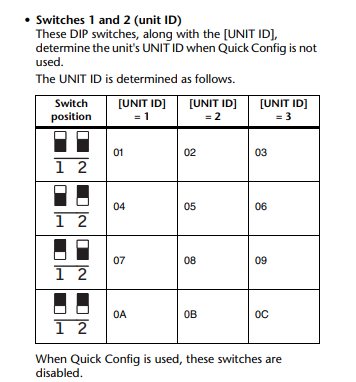 Dip Switch Settings