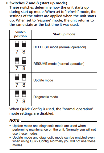 For a basic Daisy Chain network you can leave all switches in the UP position. Switch 4 will select a Daisy Chain or Redundant Setting.